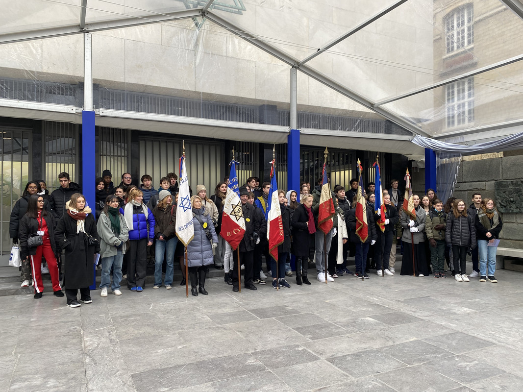 Dans le cadre de la Journée de la mémoire des génocides et de la prévention des crimes contre l’humanité, ce vendredi, les élèves ont pris part à la cérémonie organisée dans la crypte du Mémorial de la Shoah. A l’issue de cette commémoration, ils se sont vu remettre leur diplôme officialisant leur engagement en tant qu’ambassadeurs de la mémoire. Ils ont également assisté au ravivage de la flamme à l’Arc de Triomphe.