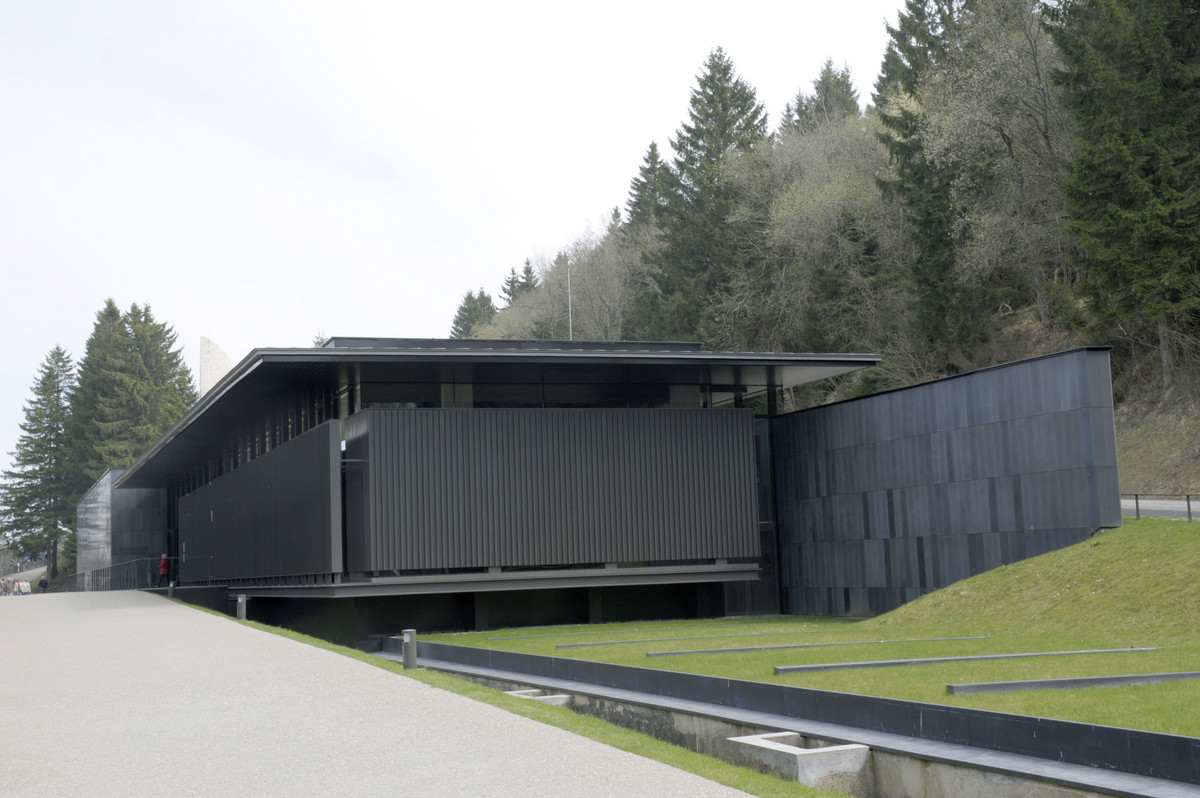 Dans son projet architectural, Pierre-Louis Faloci a voulu utiliser des matériaux sobres, comme l'aluminium, le bois, le béton brut, l'acier noir et la pierre granitique noire pour jouer sur les contrastes de lumière. Des espaces lumineux succèdent à des lieux plus sombres, adaptés à la solennité du lieu.